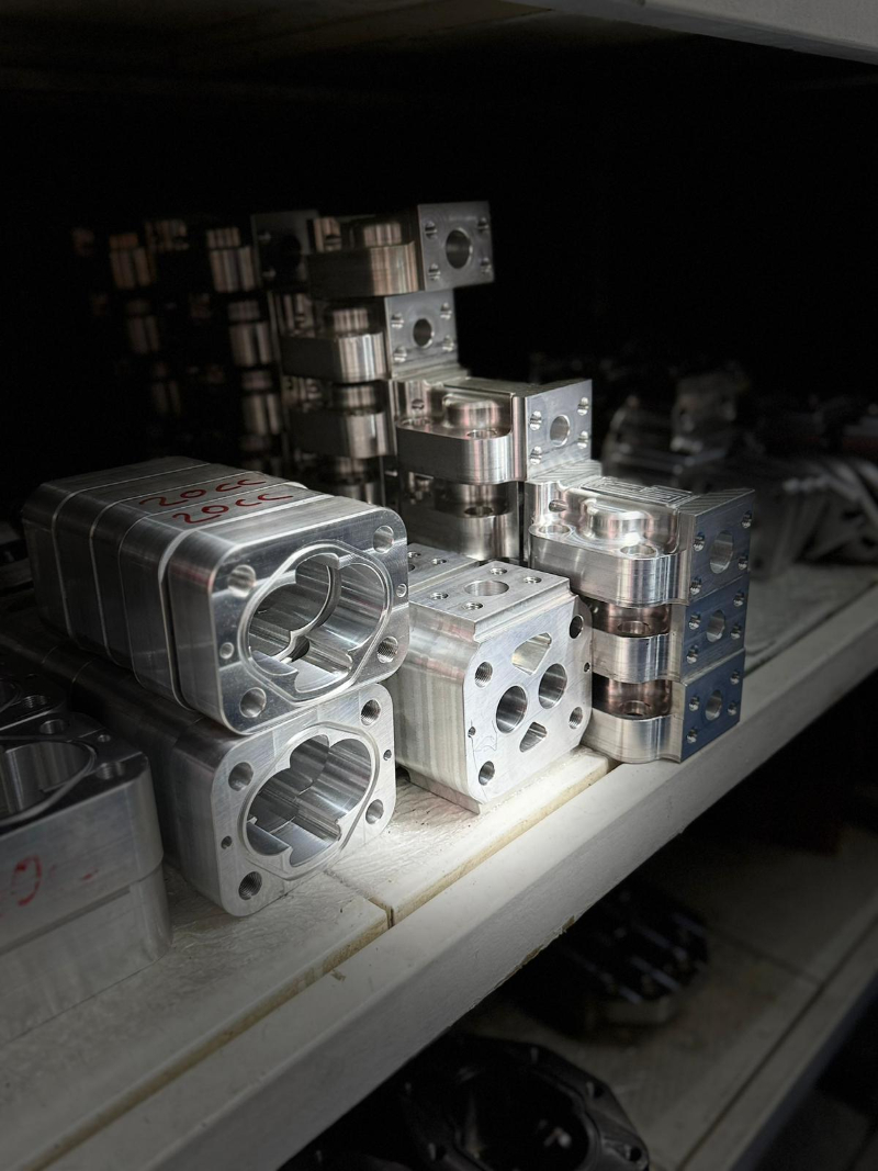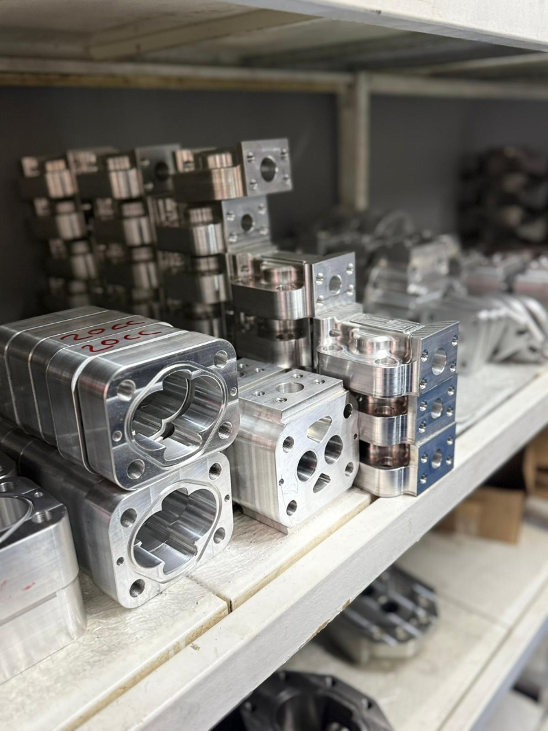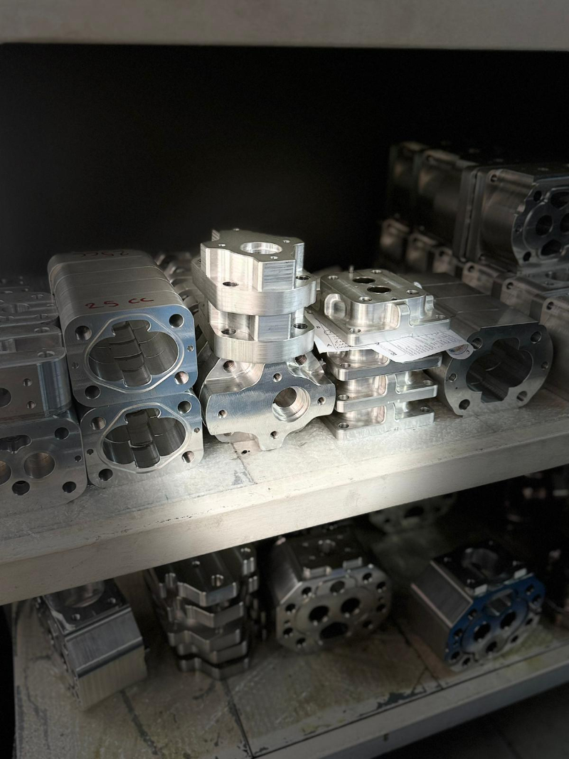 Pompa dişlileri, gövdeler, miller ve yataklama elemanları yüksek dayanımlı malzemelerden, hassas işleme teknikleriyle üretilir. CNC tezgâhlarda gerçekleştirilen işleme süreçleri sayesinde mikron seviyesinde toleranslar elde edilir. Bu hassasiyet, parçaların daha sessiz, daha verimli ve daha az aşınarak çalışmasını sağlar. Alüminyum gövdeli hafif sistemlerden ağır hizmet tipi çelik bileşenlere kadar geniş bir üretim kabiliyetine sahibiz. Böylece hem mobil makineler hem de zorlu şantiye koşulları için uygun çözümler sunarız.